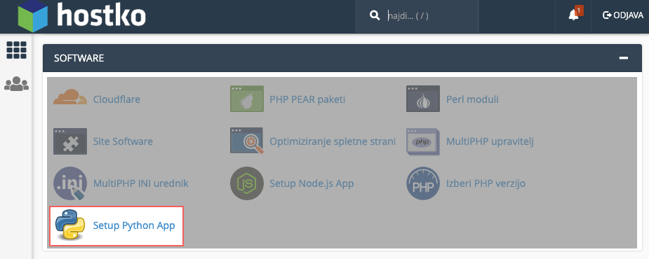 Če imate pri nas aktiven eden od pred naštetih paketov gostovanja, potem lahko v nadzorni plošči cPanel najdete ikono Setup Python App.