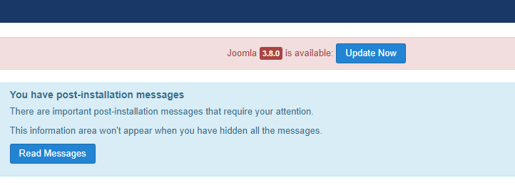 Če je nadgradnja Joomla jedra že na voljo, boste o tem vidno obveščeni ko se boste prijavili v administracijo.