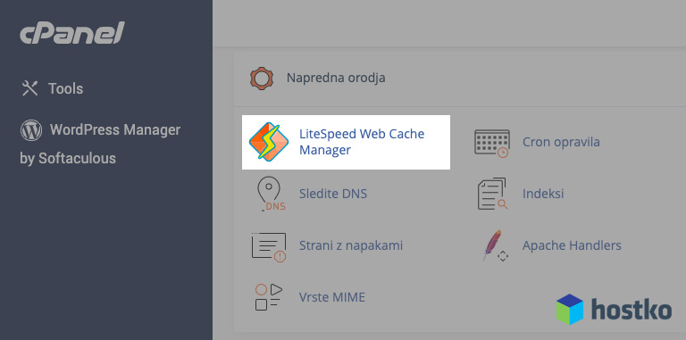 - Brezplačen LiteSpeed Web Cache Manager v cPanelu