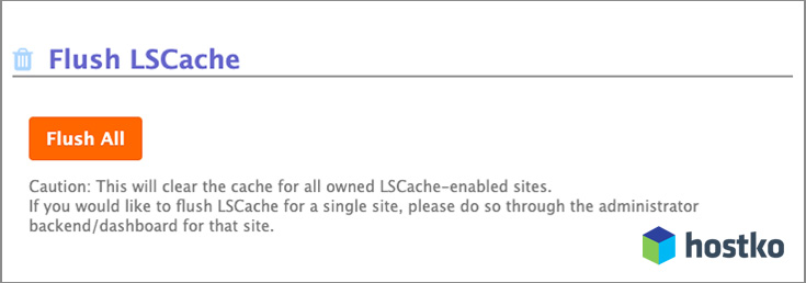 Flush LSCache (sl. Počisti predpomnilnik): S klikom na gumb Flush All boste direktno pobrisali predpomnilnik, ki ga LiteSpeed spletni strežnik ima shranjenega za vse vaše spletne strani.