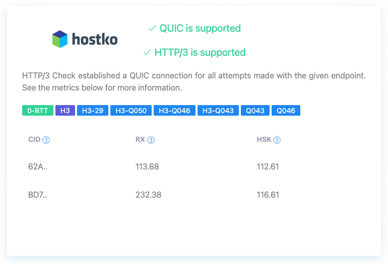 V nedavnih primerjalnih testih na https://http2benchmark.org/ si lahko ogledate rezultate kako hiter je WordPress kadar gostuje na LiteSpeed spletnem strežniku in ima omogočeno LSCache, HTTP/3 in QUIC.