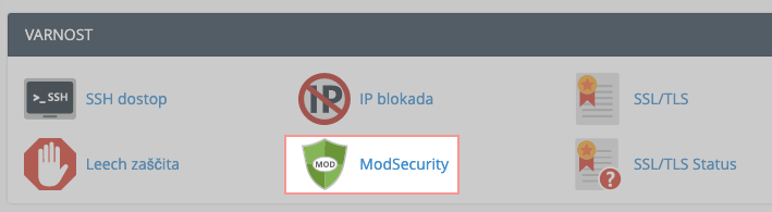 - V razdelku SECURITY (VARNOST) kliknite ikono ModSecurity.