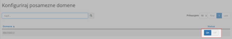 - Videli boste seznam domen in v vsaki vrstiti domene boste gumba ON/OFF. Za IZKLOP kliknite gumb OFF.