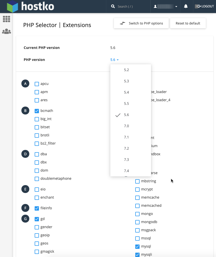 Pod PHP Version, pa lahko izbirate med samimi verzijami. Če to želite to verzijo zamenjati z novejšo npr. 7.3, enostavno klinite na številko pod PHP Version in izberite 7.3. Sistem bo za vas aktiviral PHP 7.3.