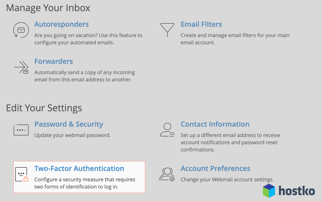 - Ko boste na strani z nastavitvami svojega e-poštnega predala, boste videli pod Edit Your Settings možnost TWO-FACTOR AUTHENTICATION.